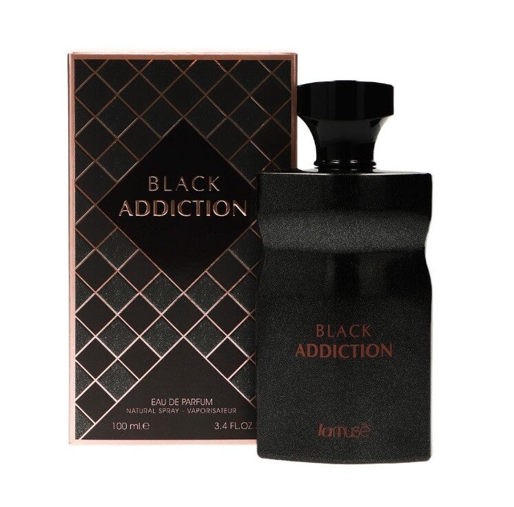LaMusê Eau de Parfum Spray Dames Black Addiction 100ml is een charimatische en gewaagde geur. Deze parfum bevat noten van florale koffie en een intense combinatie van peer, sinaasappel en peper. Dit is een vrouwelijke en sexy geur met orientaalse accenten. De glitterende flacon belichaamd een stralende geur waar iedere vrouw naar verlangt.