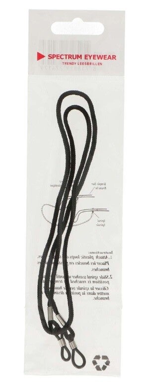 Dit zwarte brillenkoordje past op al onze leesbrillen, computerbrillen en zonnebrillen.